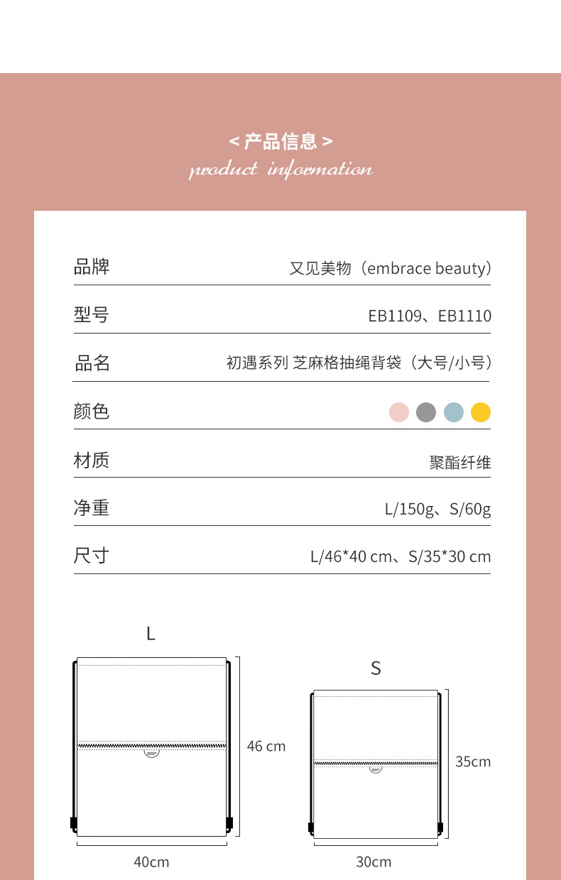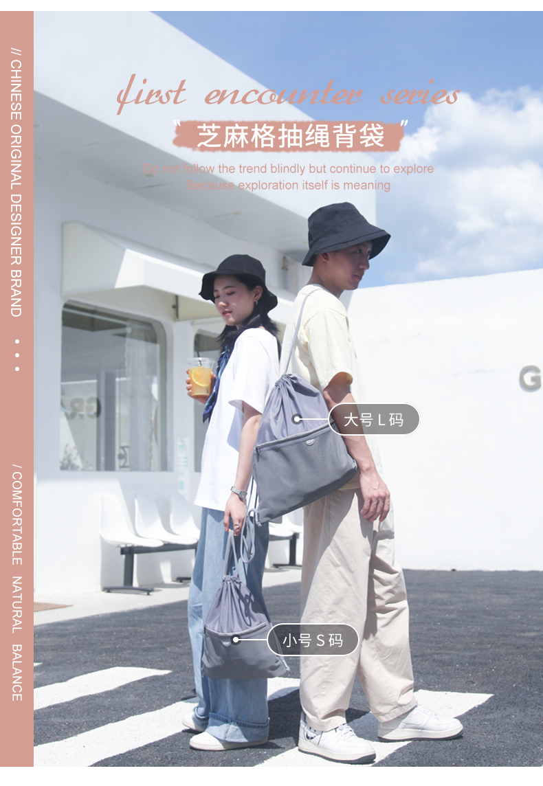 又见美物初遇系列芝麻格抽绳背袋EB1109