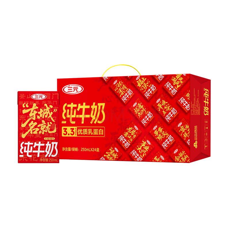三元纯牛奶250ml*24盒北京限定 年货礼盒 新老包装随机发货