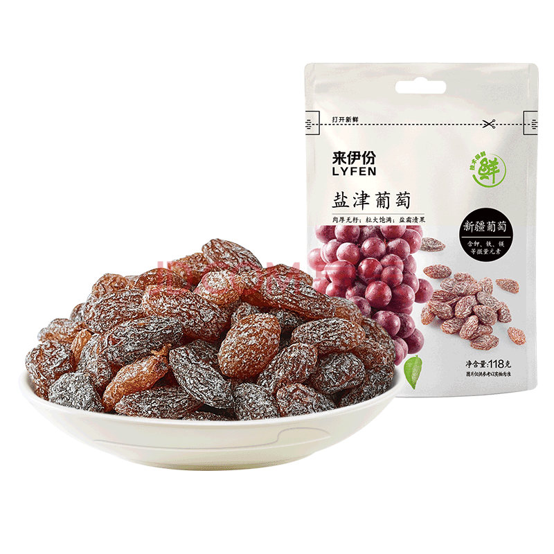 来伊份无籽葡萄干118g 大颗粒盐津葡萄水果干新疆特产蜜饯即食休闲零食