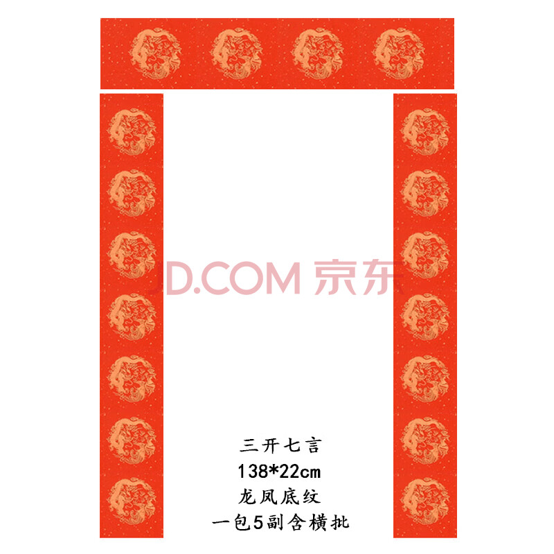芬尚wnh1505万年红宣纸 七言对联春联 龙凤洒金 四尺三开春节手写对联红纸138*22cm一包含五副五横