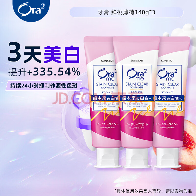 皓乐齿(Ora2)牙膏鲜桃薄荷140g*3支 亮白护龈 去烟渍 减轻口臭 含氟防蛀去牙渍