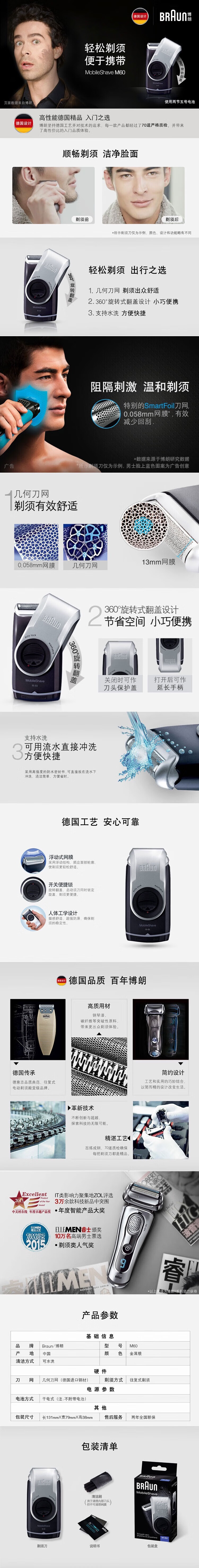 博朗【出行必备】朱一龙同款M60剃须刀电动迷你全身水洗往复式刮胡刀男士差旅复古便携