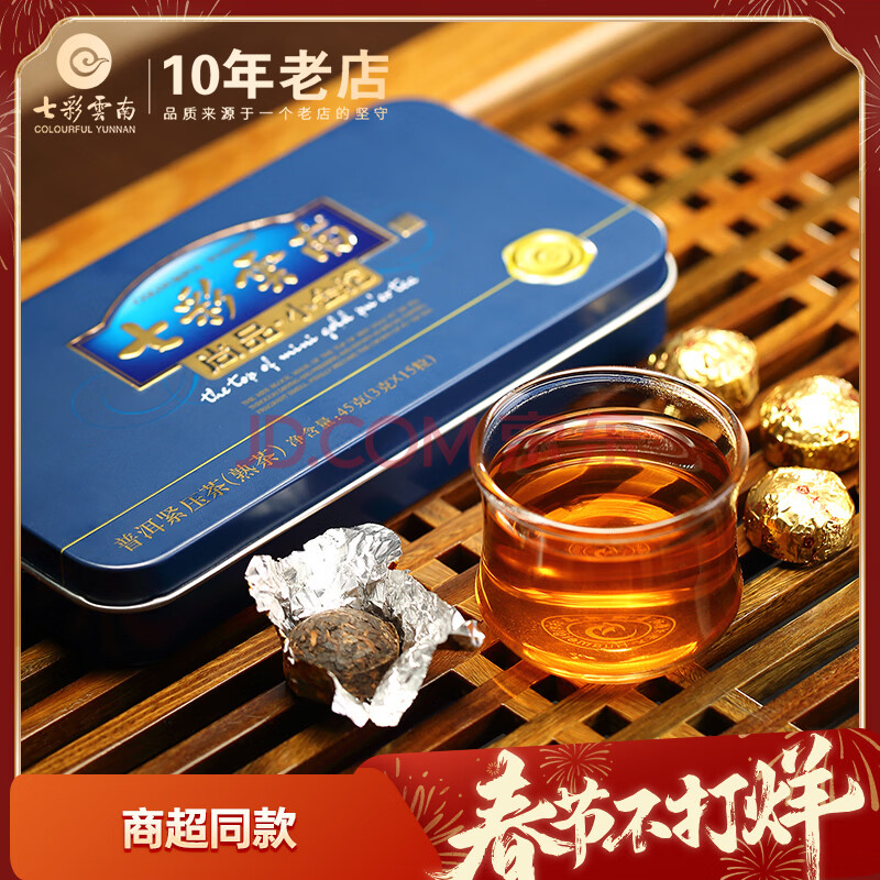 七彩雲南茶叶 普洱茶 熟茶 普洱沱茶 尚品小金沱45g/盒 线下同款