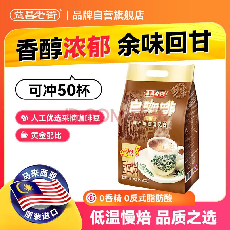 益昌老街(AIK CHEONG OLD TOWN)2+1原味速溶白咖啡粉 冲调饮品 马来西亚进口 50条1000g