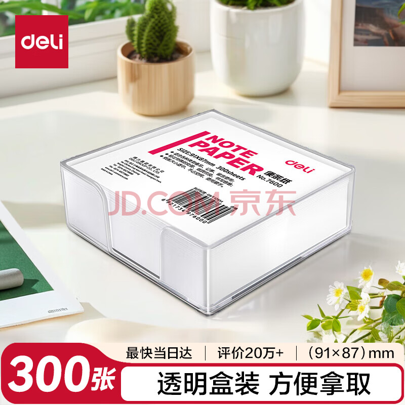 得力(deli)91×87mm/300页带盒便签纸便条纸便签本办公用品 7600