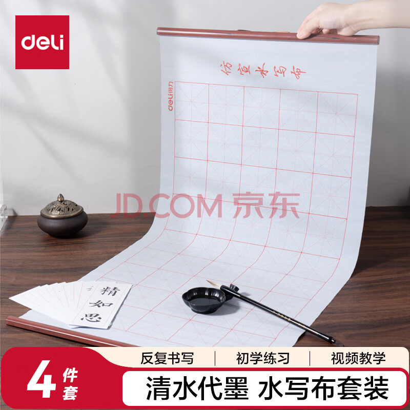 得力(deli)仿宣水写布/毛笔/成人练字帖 可重复书写楷书精品文房四宝套装 初学者书法入门 开学用品