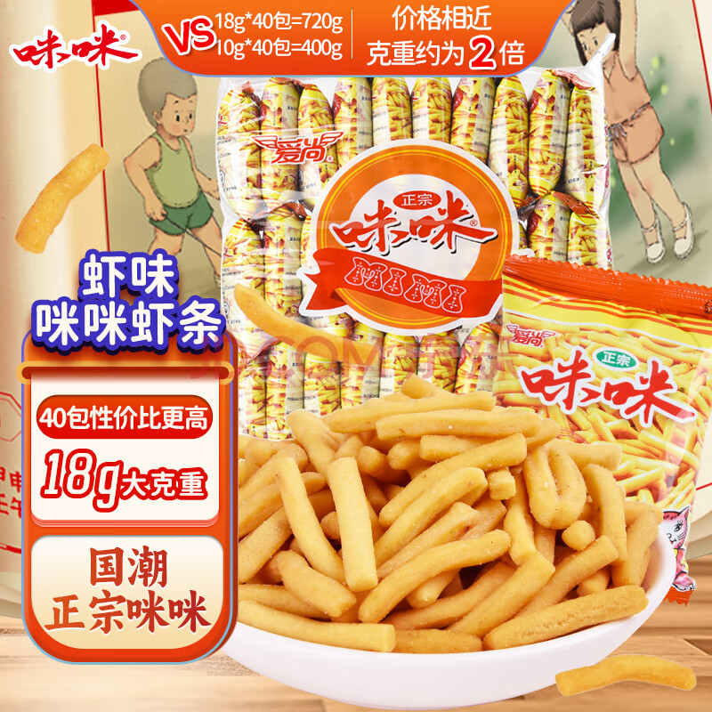 咪咪虾条 虾味(18g*40袋)720g/包 怀旧爱尚儿童零食大礼包独立小包装