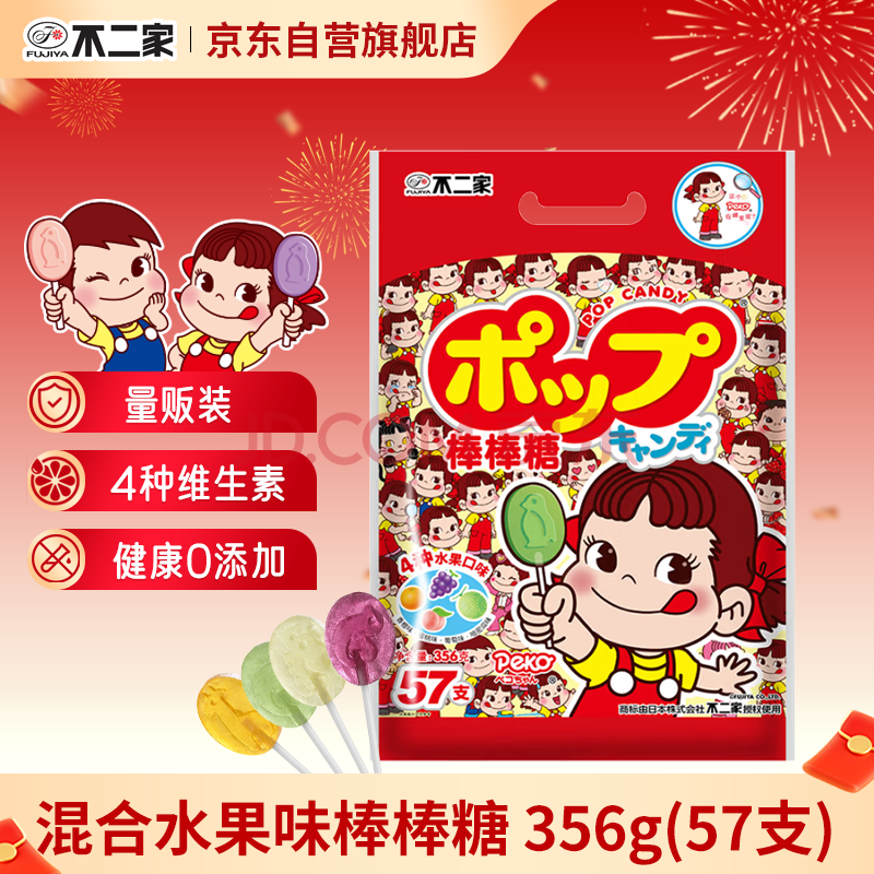 不二家 混合水果味棒棒糖 356g(57支) 儿童糖果 休闲零食 水果糖 喜糖
