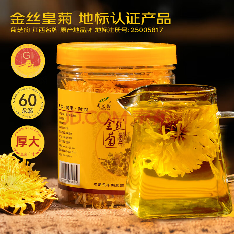 菊芝韵 花草茶叶 菊花茶 金丝皇菊大朵贡菊一杯一朵20g(约60朵)