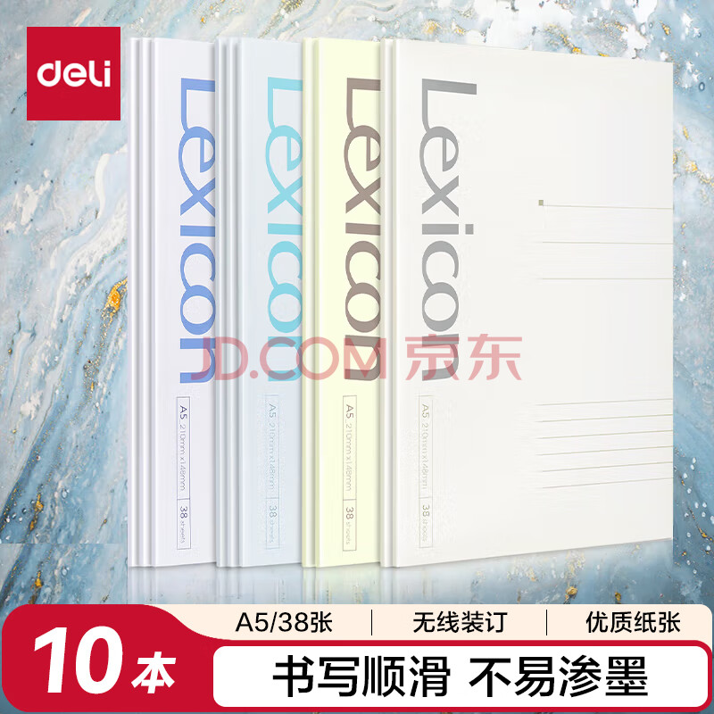 得力(deli)10本A5/38张无线装订软抄本 记事本/ 日记本 /工作笔记本子文具办公用品33385