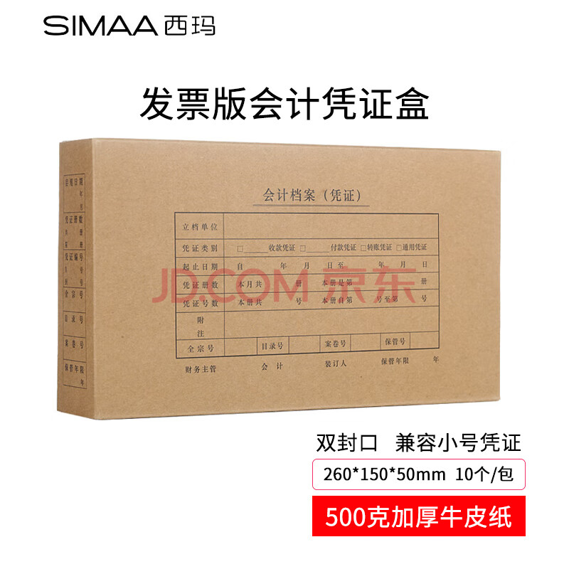 西玛(SIMAA)发票版会计凭证盒 双封口 10个/包 260*150*50mm 财务费用报销单记账凭证封面包角纸档案盒子