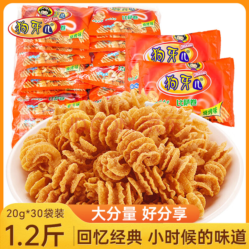 狗牙儿比萨卷 锅巴 烧烤味20g*30袋 休闲零食 八爪烧 膨化食品 热门商品