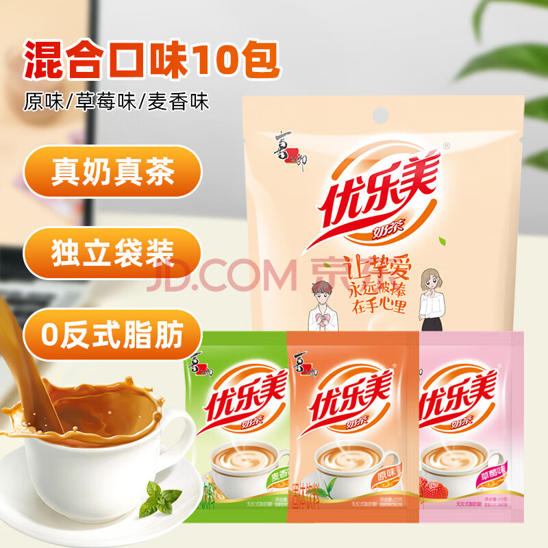 优乐美奶茶粉22gx10袋装原味麦香草莓3口味早餐下午茶冲泡饮料