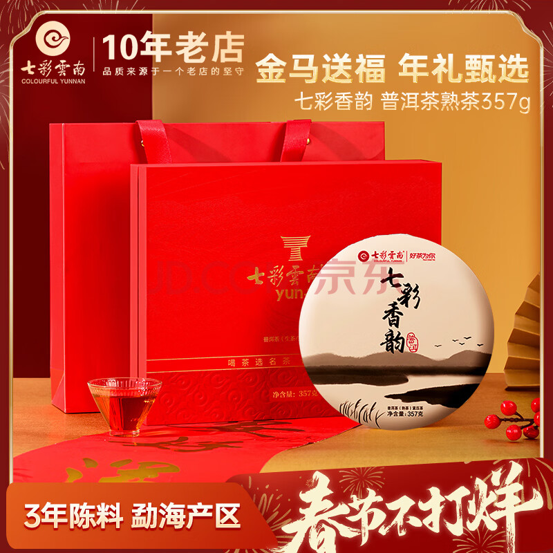 七彩雲南普洱茶熟茶 七彩香韵357g 茶叶礼盒 年货节送礼品 礼物送长辈领导