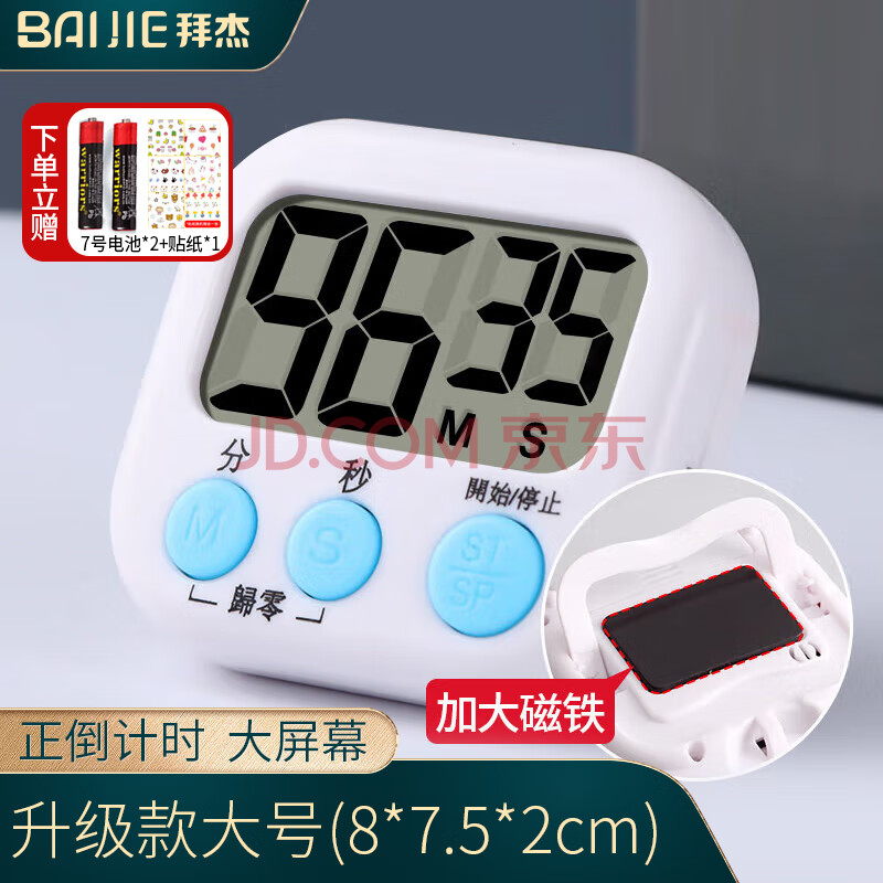 拜杰计时器厨房学生闹钟磁吸计时器定时器提醒器计时时钟二合一大屏幕