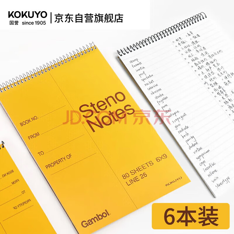 国誉(KOKUYO)【热门商品】螺旋笔记本子Gambol渡边竖翻线圈速记本6x9寸(A5)8mm中央分栏线80张/本6本WCN-S6090