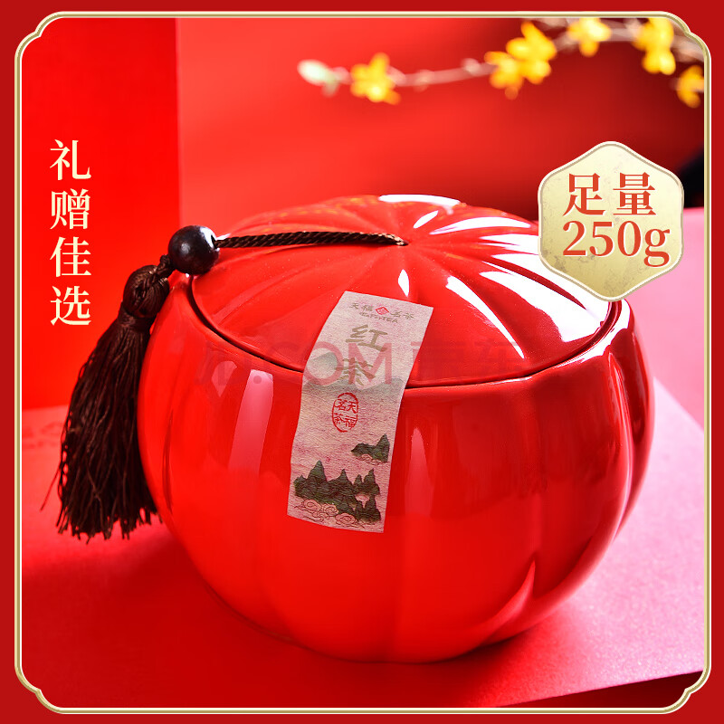 天福茗茶红茶 武夷山正山红茶特级250g瓷罐装茶叶礼盒送礼