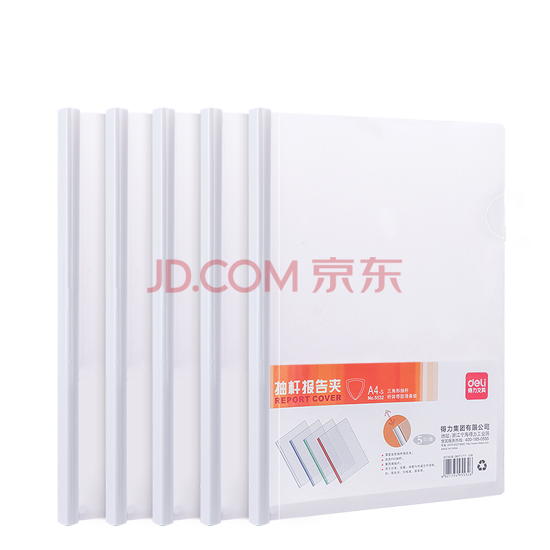 得力(deli)5只A4加宽加厚14mm拉杆夹 透明抽杆文件夹报告夹 资料简历夹5532白色