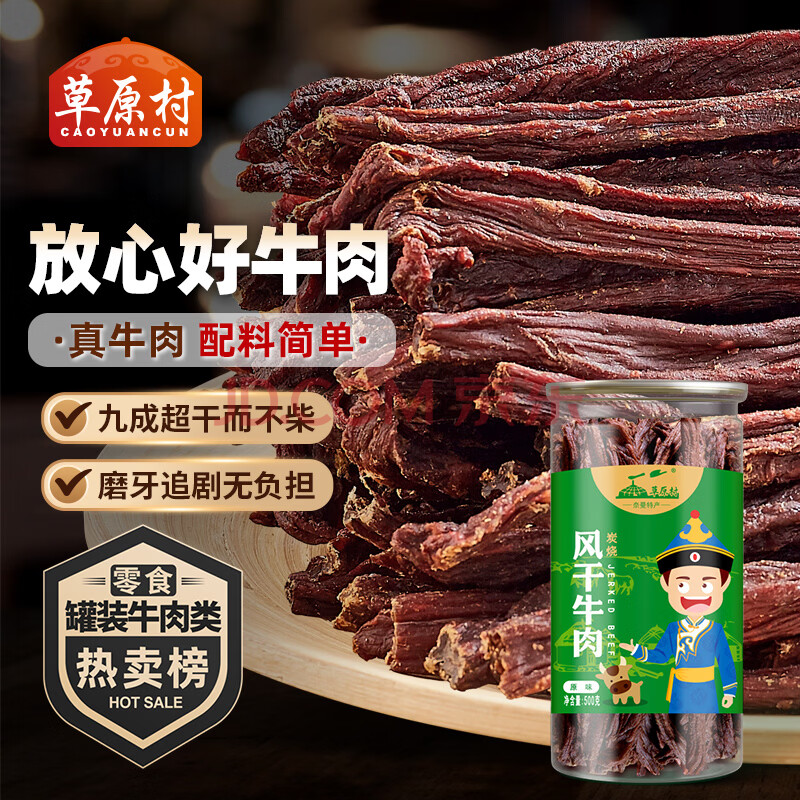 草原村内蒙古超干风干牛肉干特产9成干3种配料零食解馋500g原味4