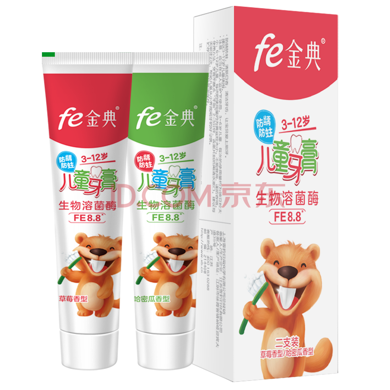 fe金典儿童牙膏3-12岁婴幼儿宝宝可用含氟防龋防蛀 草莓哈密瓜香型60g*2