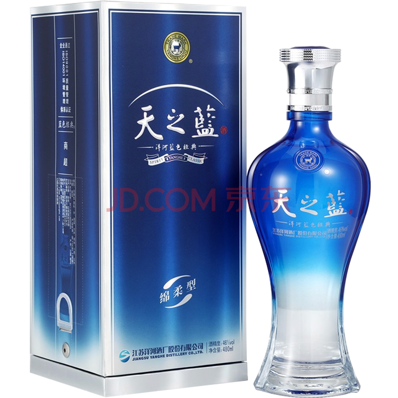 洋河 蓝色经典 天之蓝 52度 480ml 单瓶装 绵柔浓香型白酒
