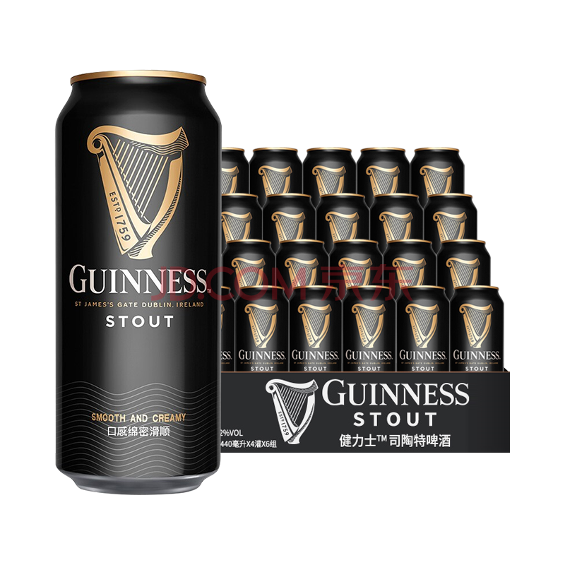 健力士黑啤精酿啤酒440ml*24听整箱装京东自营