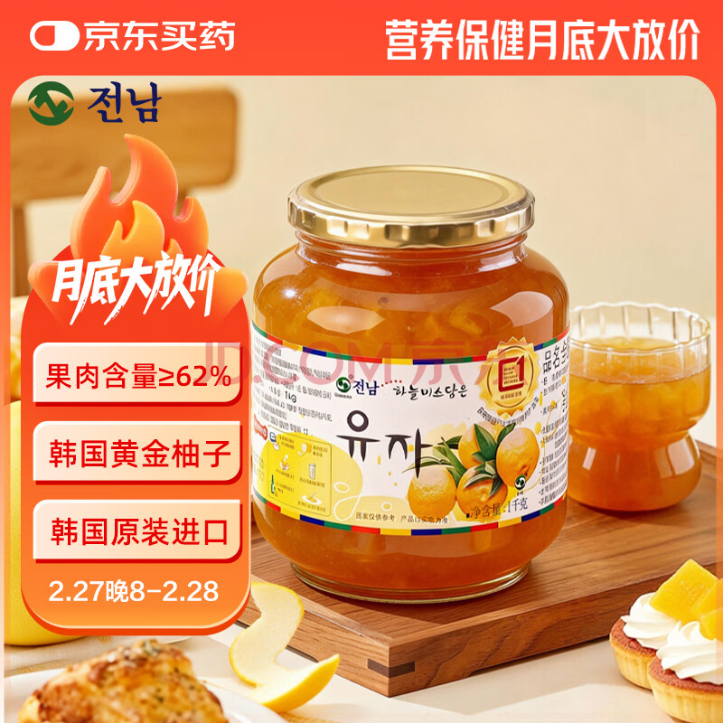 全南蜂蜜柚子茶1kg 韩国进口冲调饮品年货礼品 水果茶柚子茶下午茶