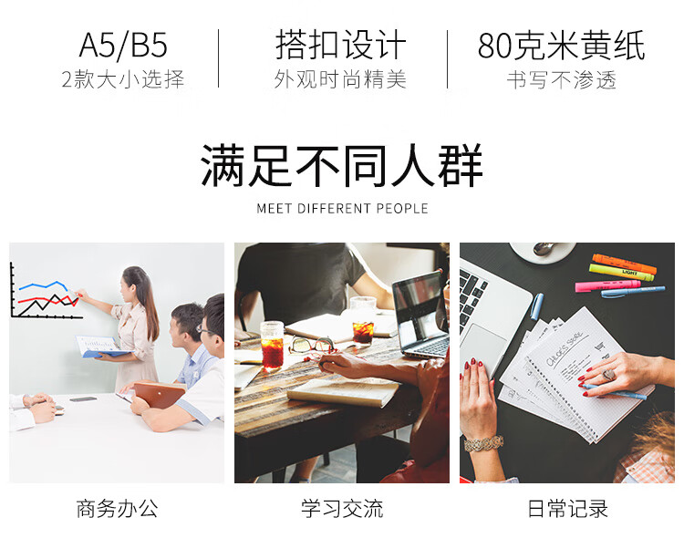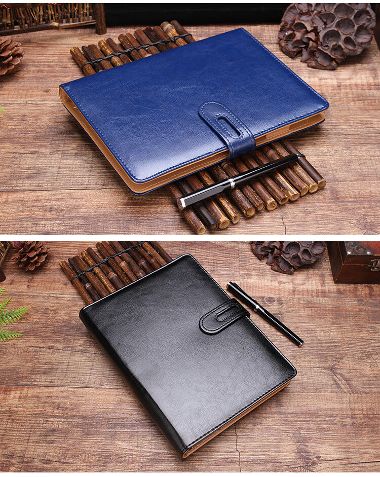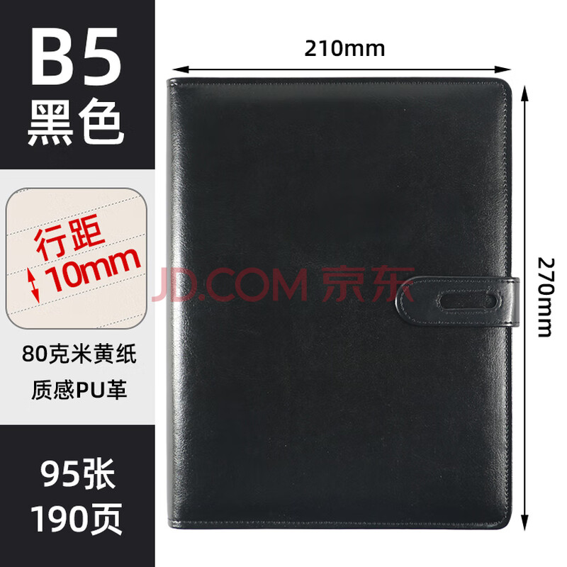 得力(deli)16K大号笔记本80张本子会议记录本皮面本记事本日记本文具办公用品黑色7949