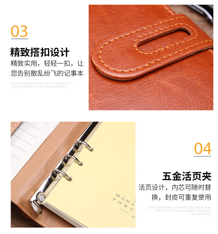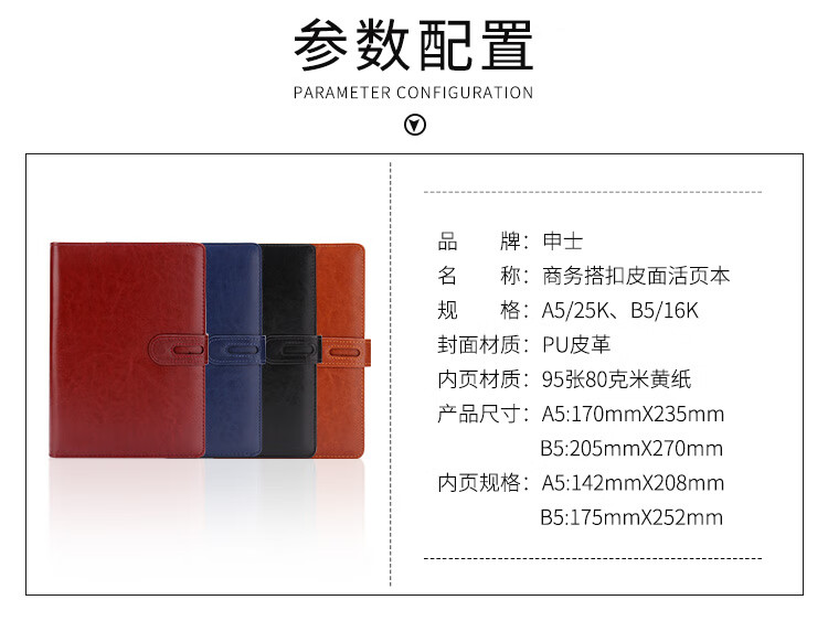 申士(SHEN SHI) B5/16K 9孔经典商务活页本皮面本可替换内芯 95张办公会议记录记事笔记本子jd19216黑色1本