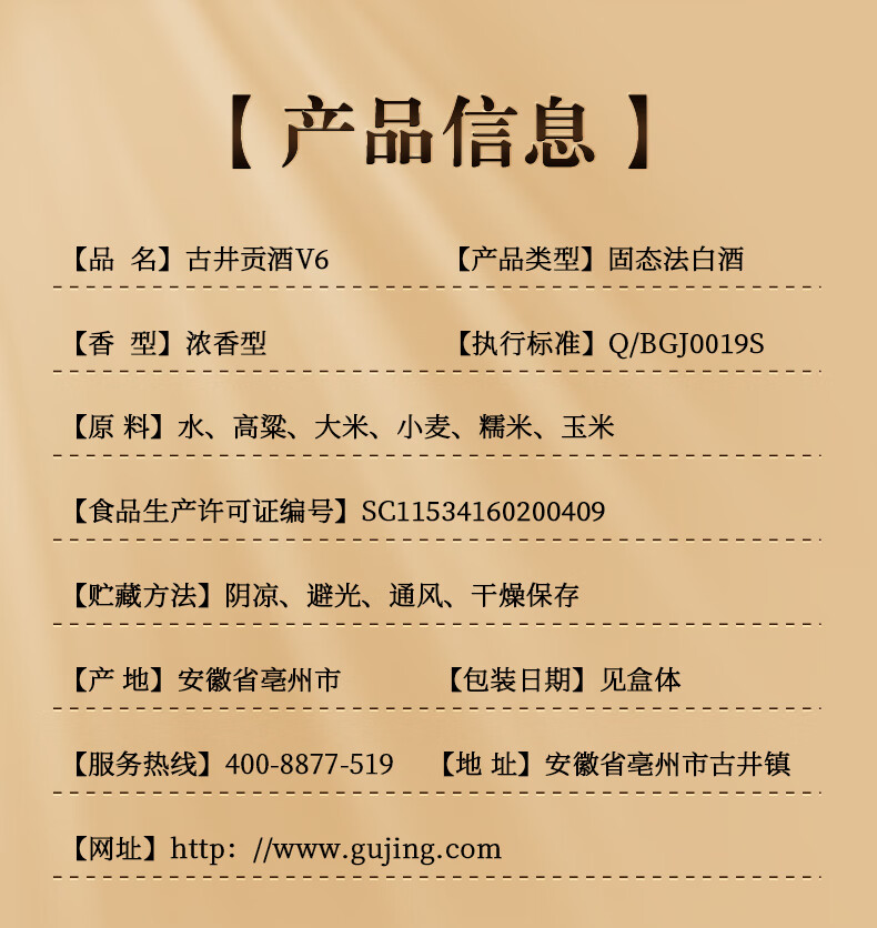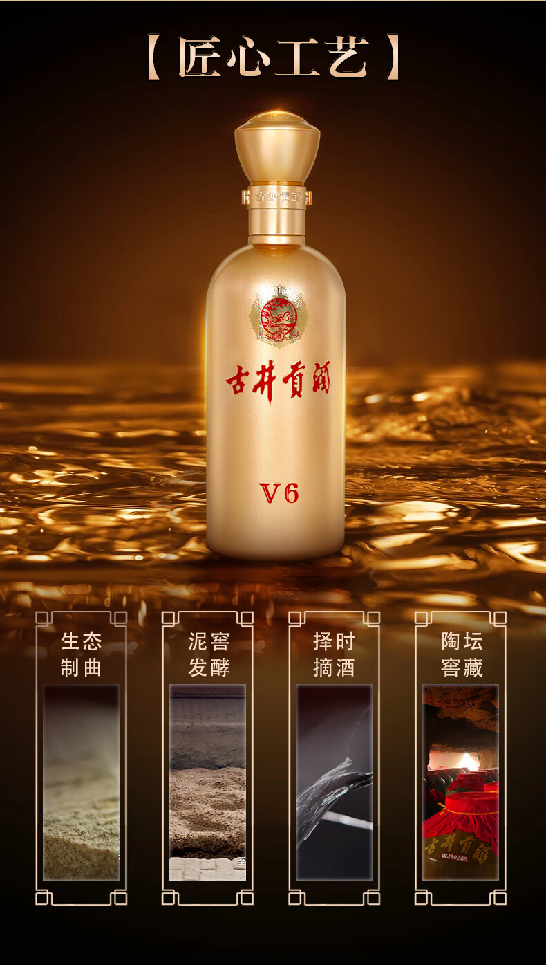 古井贡酒 V6 浓香型白酒 50度 500mL*1瓶 单瓶装 口粮酒