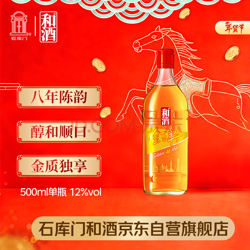 和酒金色年华八年半干型 海派黄酒 500ml 单瓶装上海老酒过年送礼